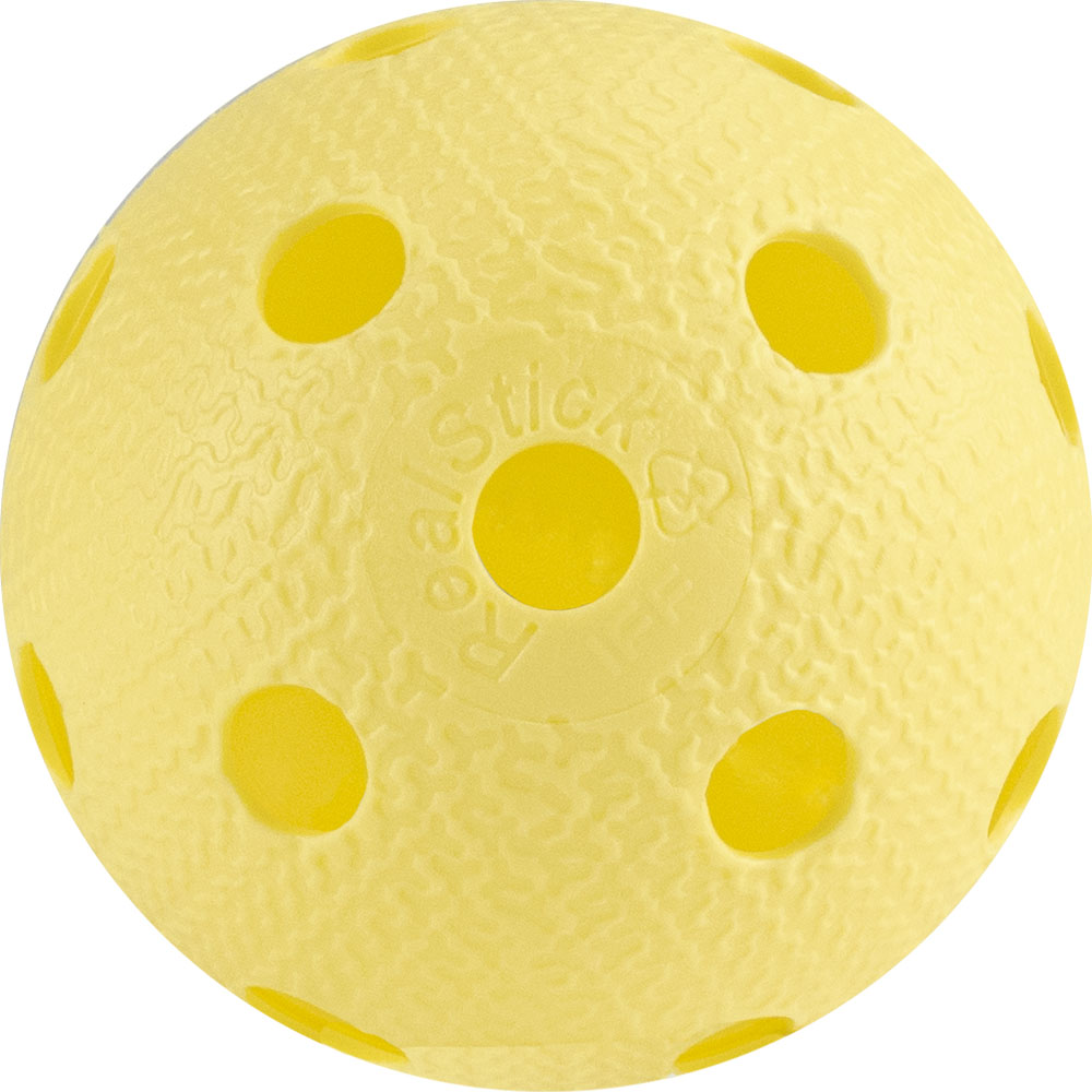 Мяч для флорбола "RealStick". Пластик с рельефным нанесением для меньшего трения, большей стабильности полета и скорости, лучшего контроля мяча. Одобрен IFF (Международной федерацией флорбола).