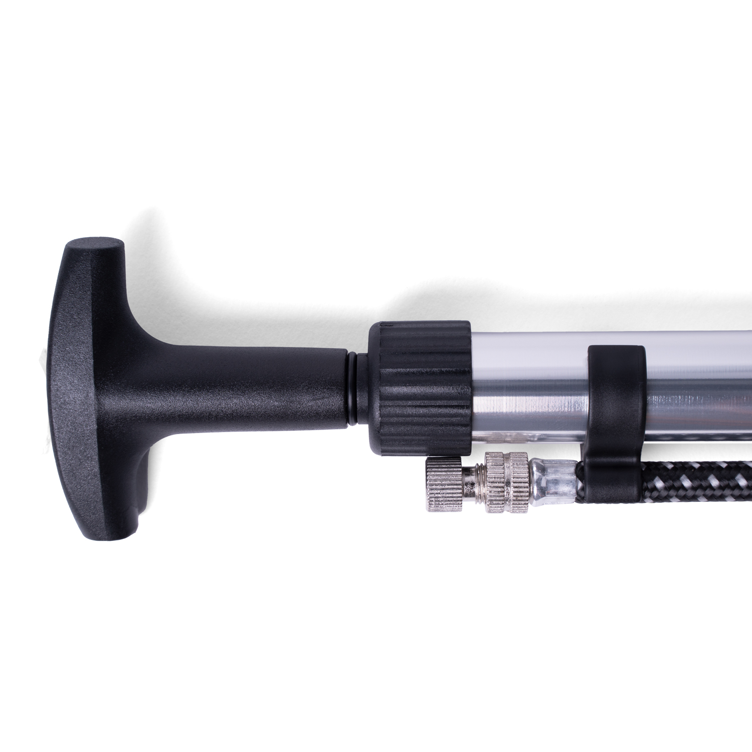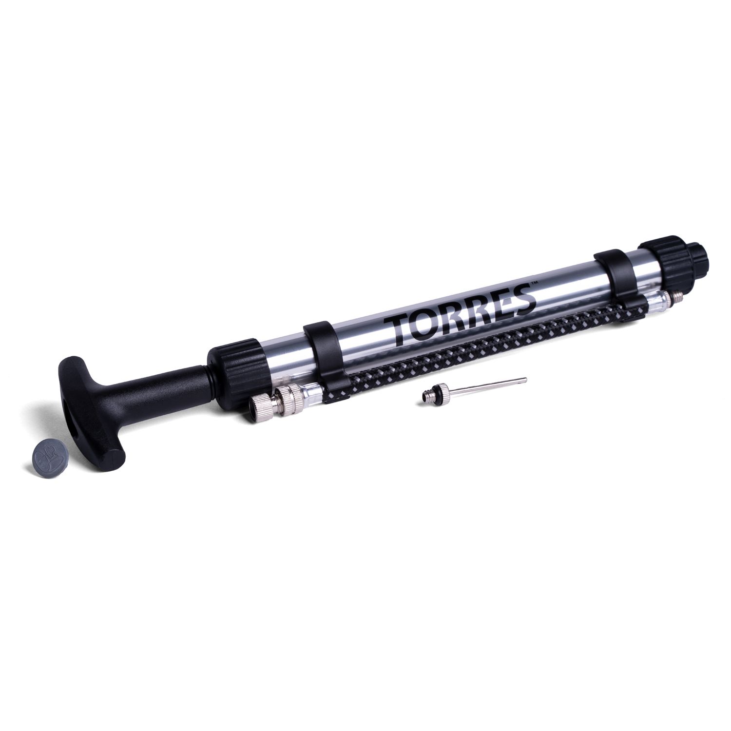 Насос двойного действия "TORRES", длина 20 см, корпус из высокпрочного и легкого алюминиевого сплава, в комплекте игла (5мм) для накачивания мячей (в ручке насоса) и гибкий шланг.
