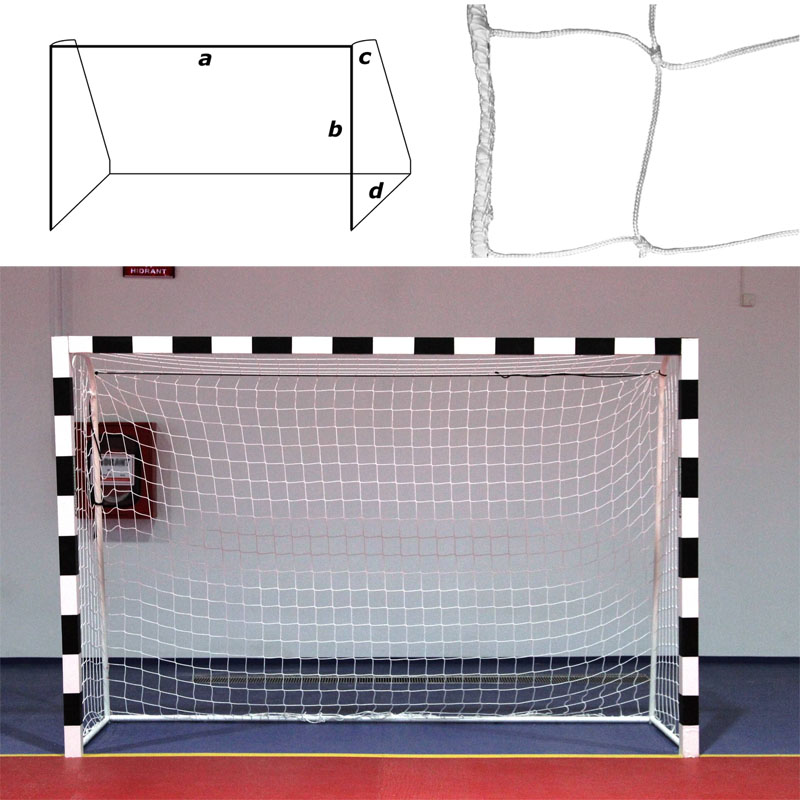 Сетка гандб./футзал., по форме ворот, размер a:3.0 b:2.0 c:0.8 d:1.2 м, нить 3,5 мм полипропилен (ПП), ячейка 10*10 см, цвет белый. Кромки сетки обработаны оверлоком. Шнур для крепления в комплекте.