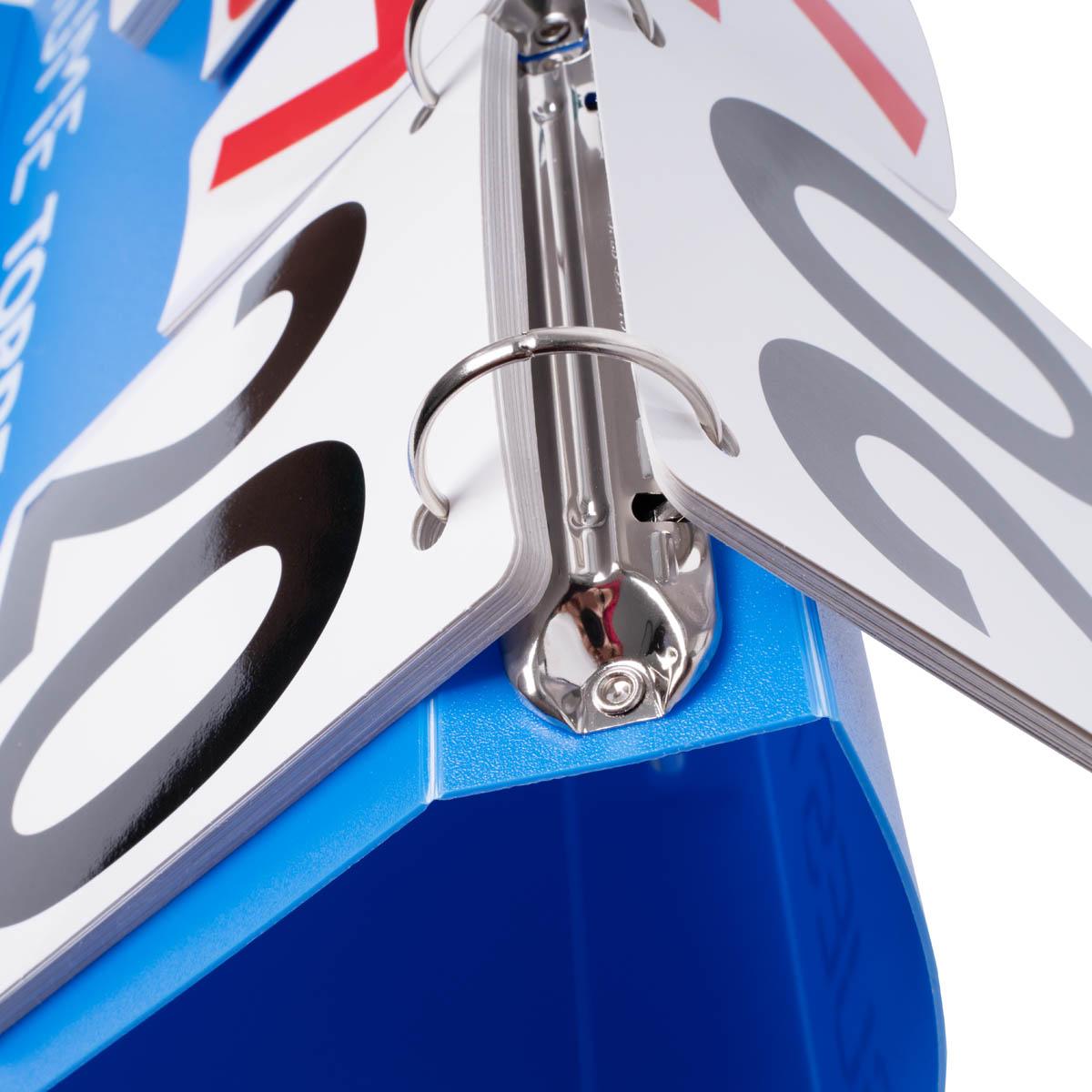 Счетчик для волейбола "TORRES". Предназначен для отображения счета по партиям (до 9), счета в партии (до 30). Складной, фиксация - на кнопках, без дополнительного стопора. Полностью изготовлен из пластика, кольца - металл. Листы с с обеих сторон напечатанными цифрами из ламинированного картона. Пластиковая ручка для переноски.