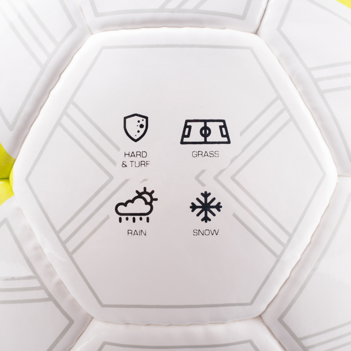 На мяч наносятся пиктограммы, рекомендующие его для игры в тех или иных погодных условиях и на тех или иных типах поверхностей.