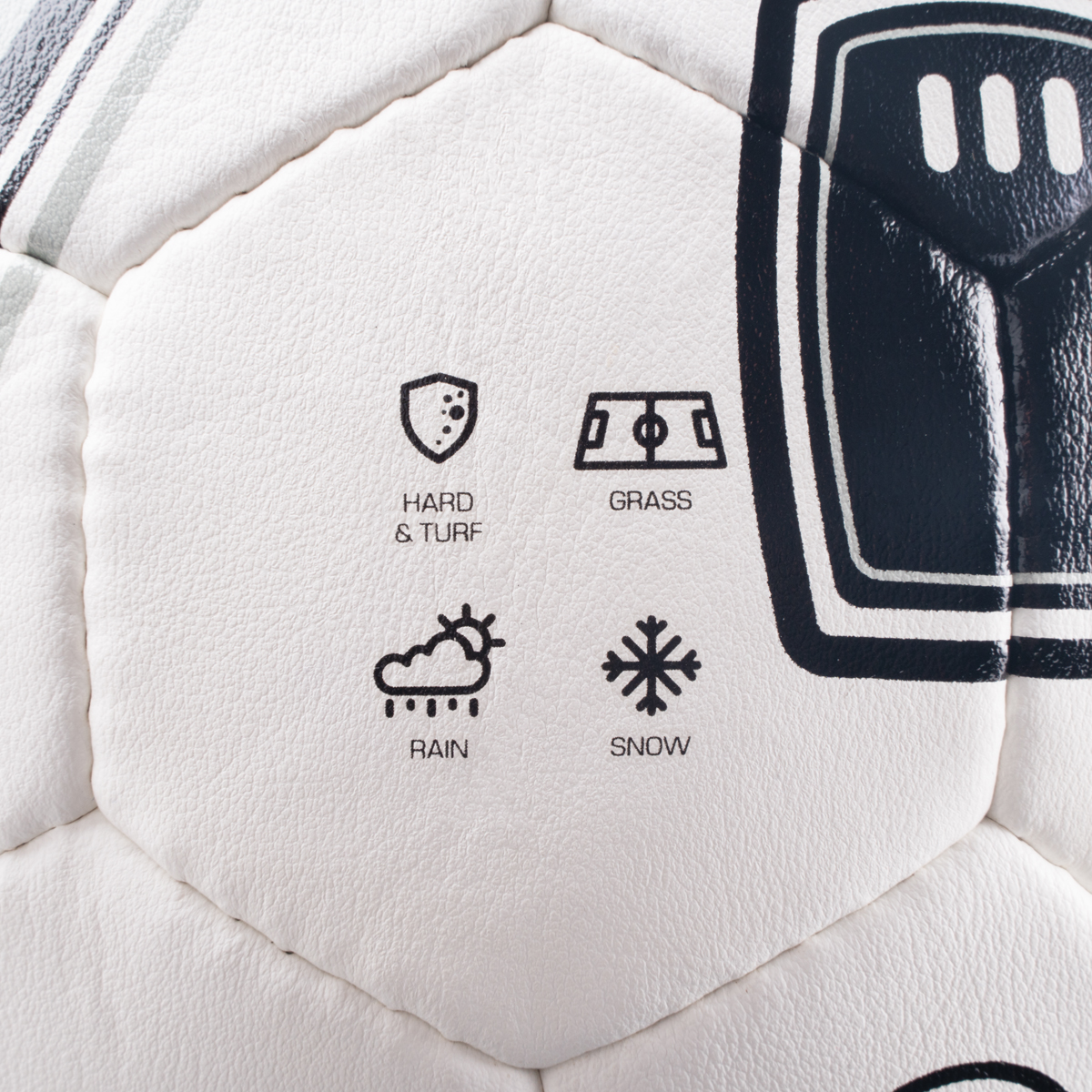 На мяч наносятся пиктограммы, рекомендующие его для игры в тех или иных погодных условиях и на тех или иных типах поверхностей.