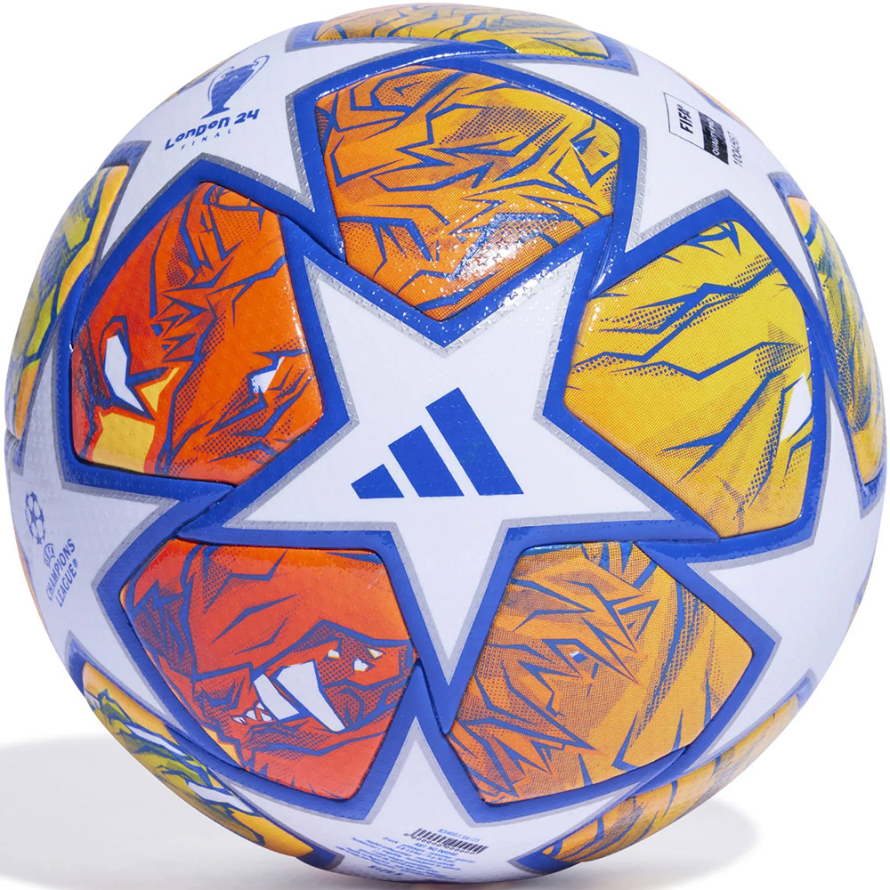 Привлекательный дизайн посвящен городу-хозяину финала турнира - Лондону, а яркая графика изображает двух рычащих львов, сражающихся среди звезд. Лев символизирует богатую историю и культуру Великобритании и ее столицы, олицетворяет храбрость и силу игроков, а также величие самого желанного трофея в европейском клубном футболе. На панели стильным каллиграфическим почерком выведена надпись "London 24 Final", а яркие детали мяча усиливают визуальный эффект, делая игру более зрелищной. Фирменные звездные панели указывают на то, что им будут играть самые звездные футболисты.