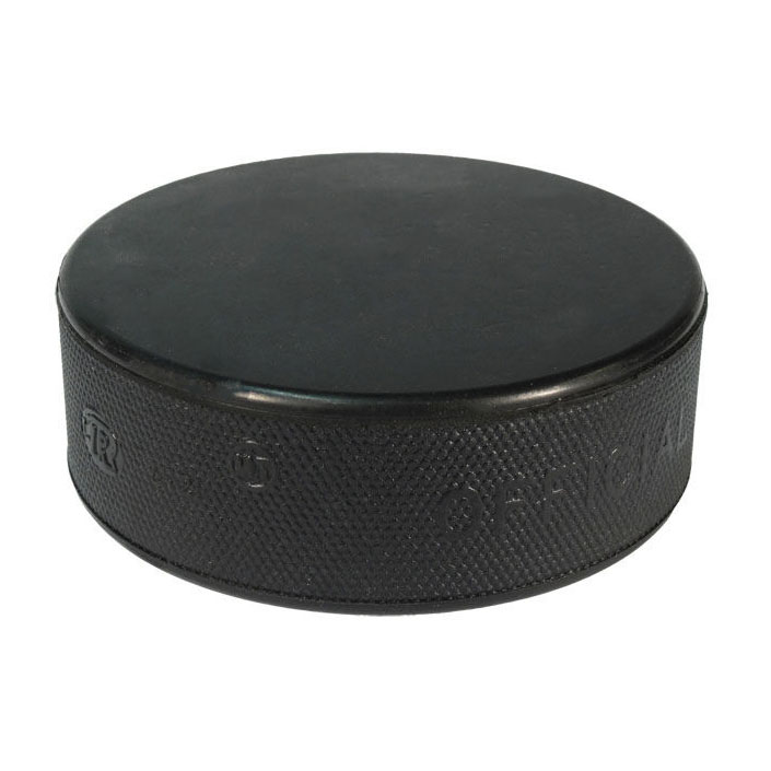 Облегченная хоккейная шайба VEGUM JR стандартного размера (диаметр 60 мм, высота 20 мм) изготовлена из вулканизированной резины и имеет массу 85 грамм.