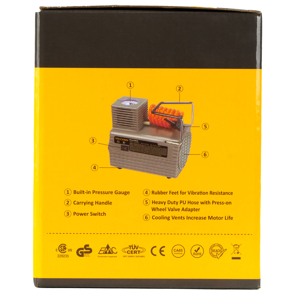 Компрессор электрический VOLCANO PM250 ДхШхВ 18х14х16 см Серый