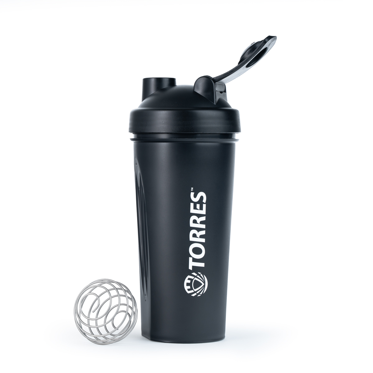 Шейкер спортивный TORRES, S01-600-03, 600мл, крышка с колпачком, пластик, черный Черный