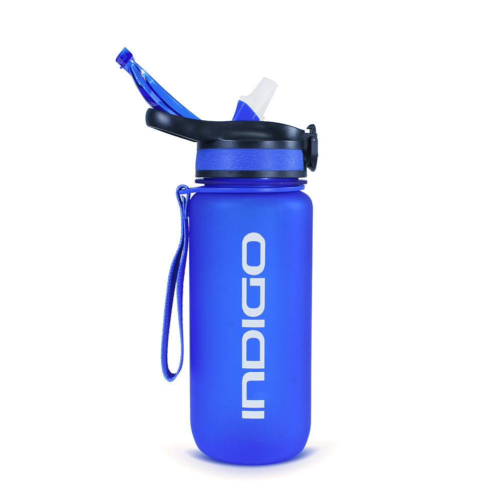 Бутылка для воды INDIGO. Объем 700 мл, тритан, без мерной шкалы. Покрытие соф-тач. Снабжена откидной крышкой с блокировкой от случайного открывания. Крышку легко открывать одной рукой.Страховочный ремешок способствует более удобному и комфортному ношению бутылки. Диаметр 8см. Не предназначена для горячего.