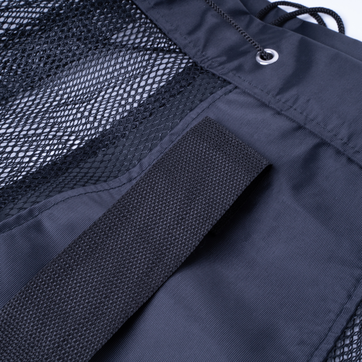 Сетка-mesh со вставками из плотного полиэстера, регулируемый ремень для переноски. Шнурок с фиксатором. Фирменный логотип.